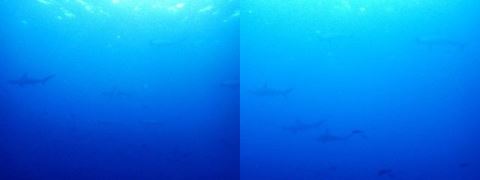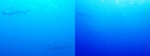 ハンマーヘッドシャークです! その群れを見れました。ラッキー! 水底から見上げた画像です。透明度も良かったな。
