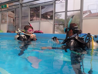 日帰りでオープンウォーターのプールのみをやりました。 暑い暑い!