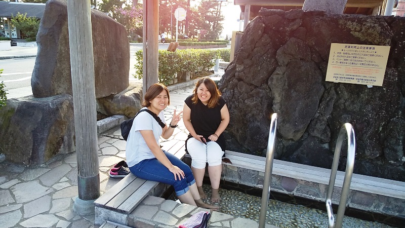 土肥の足湯でのんびり!でもアツアツでした(笑)