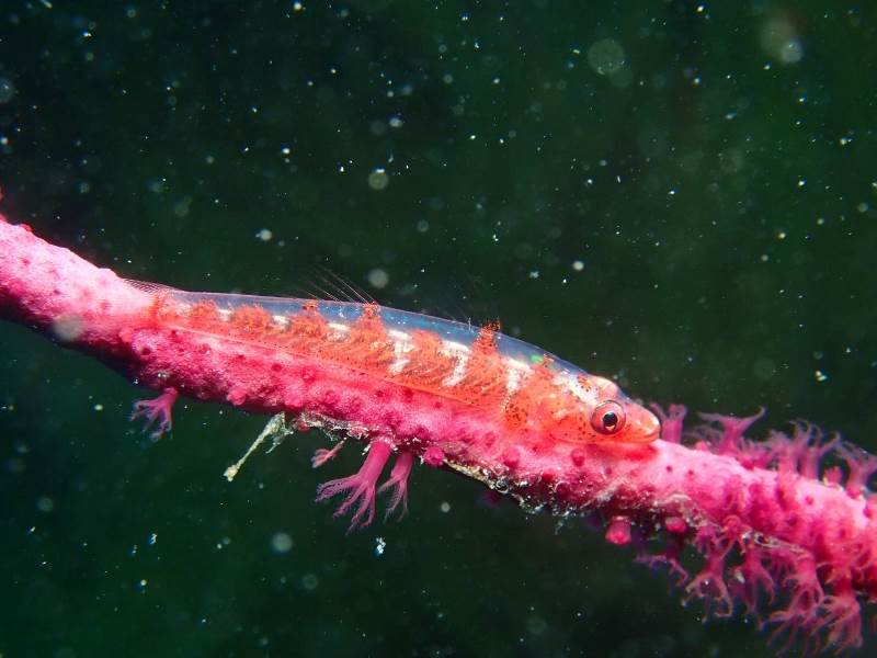 女性仲良し二人組のファンダイビングです。 お二人とは初めてのお付き合いになります。 ずっと前から予約を頂いていて、彼女たちのリクエストは小さな魚を撮影。 マクロですね!